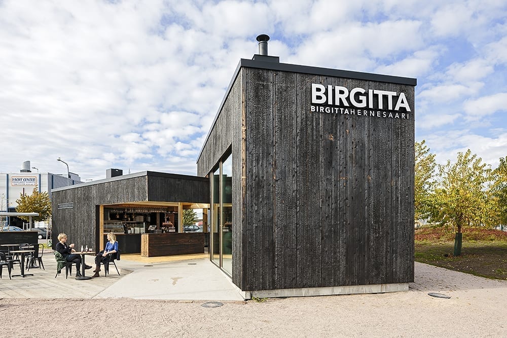 Ympäröivä luonto voi tarjota kahvilalle upeita mahdollisuuksia, kuten Helsingissä sijaitseva Café Birgitta osoittaa. Se on rakennettu Suomenlahden rannalle ja paistattelee avoimin merinäköaloin suorassa auringonvalossa. Rakennus on kuin avaralla kaupunkirannalla sijaitseva suojaisa pesä, jonne on helppo poiketa sisään.