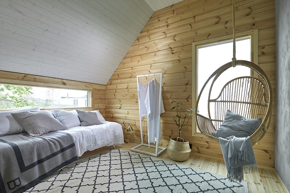Marun vinkki #1: Kunnioita hirttä rakennusmateriaalina ja pyri sisustuksessa rauhalliseen yleistunnelmaan.