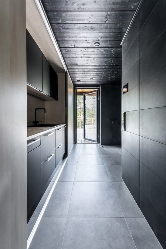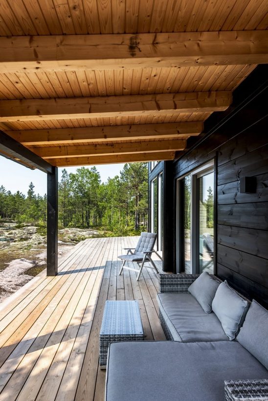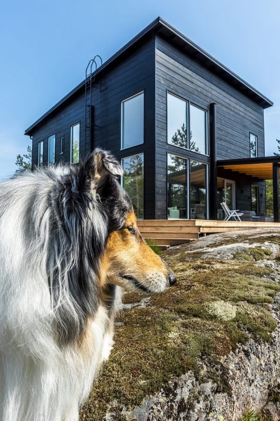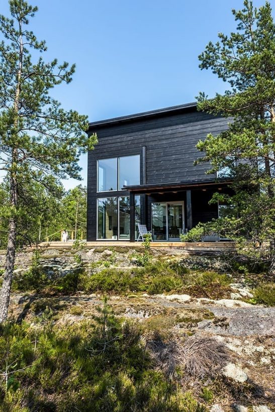 Materiaali oli myös täydellisen sopiva ympäristöönsä, mustaksi ulkopuolelta käsiteltynä se maastoutuu kauniisti jäkäläisten kallioiden ja käkkyrämäntyjen sekaan.