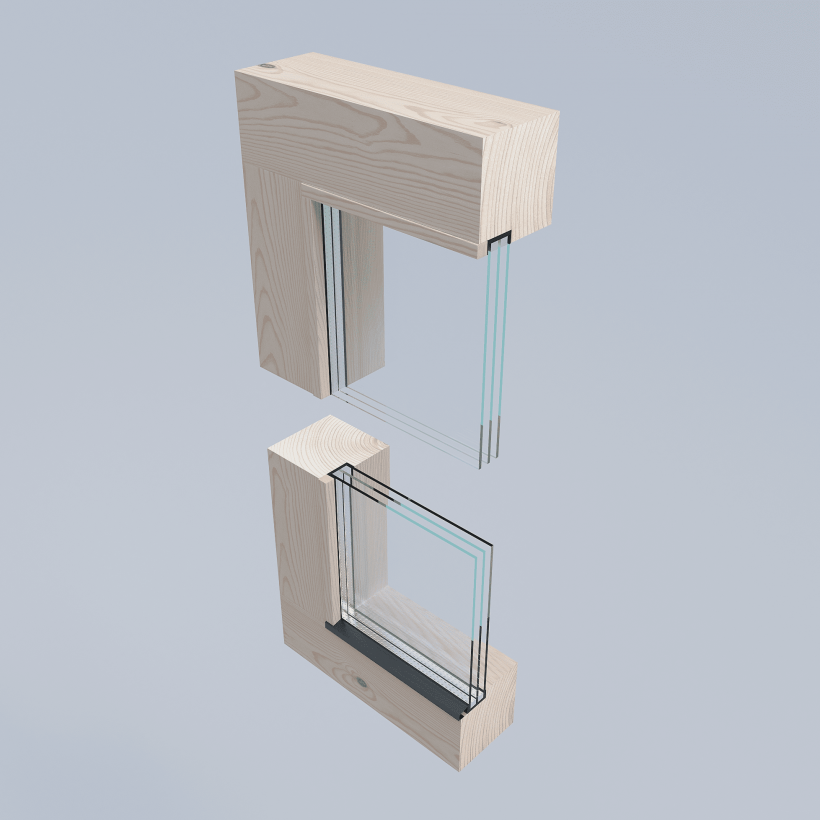Pilaripalkkirakennetta hyödynnettäessä lasiseiniin eli ikkunoihin ei tarvita erillisiä listoituksia, sillä isot lasielementit liitetään suoraan kantaviin puupalkkeihin, jolloin lasiseinästä tulee eleettömän kaunis. Lasiseiniä voi olla useampia ja ne voivat olla jopa kokonaisia seiniä, mikä tekee hirsitalosta avaran oloisen.