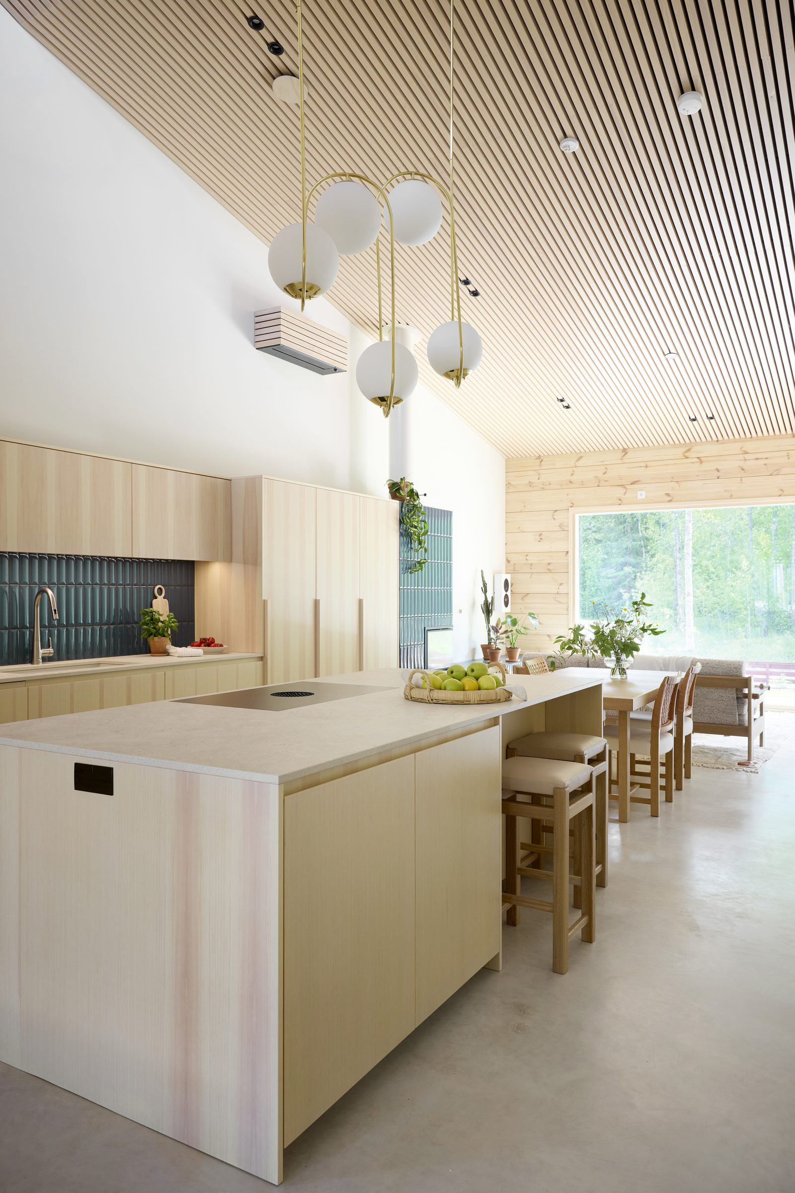 Halusimme, että mänty ja luonnollisuus jatkuvat myös sisällä ja materiaalit ovat oikeasti sitä, miltä ne näyttävät.