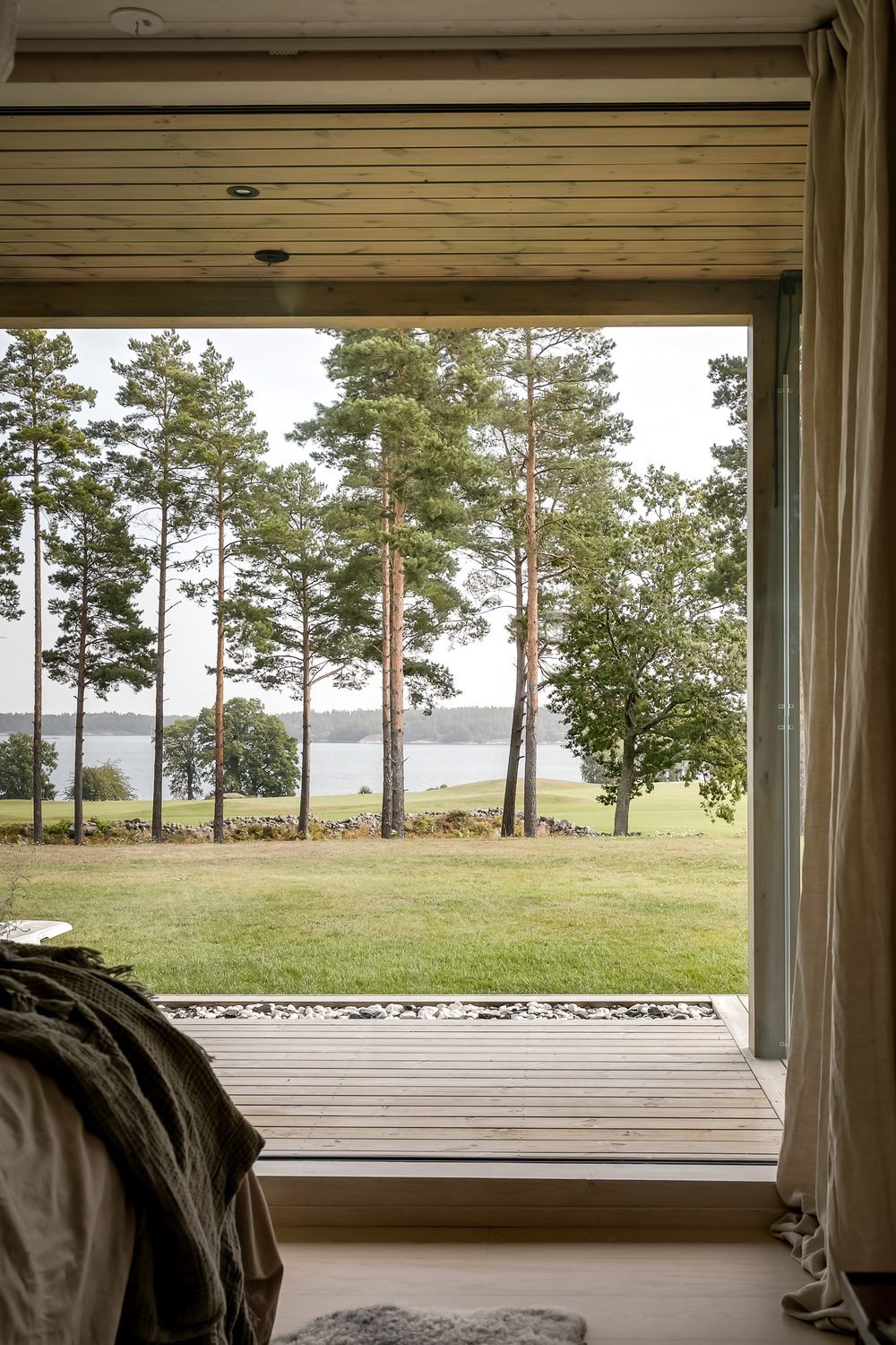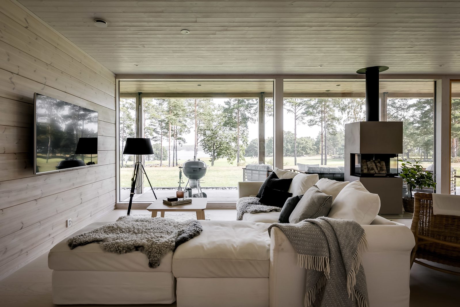 Fredrikille olohuone on selvä suosikkipaikka. “Vietämme siellä usein aikaa naapureiden kanssa drinkin tai illallisen äärellä”, hän sanoo. Jenny puolestaan viihtyy sekä makuuhuoneessa, jossa hän voi makoilla merelle päin katsellen ja kirjaa lueskellen, että olohuoneessa, jossa hän istuu mielellään takkatulen ääressä nautiskellen kupillisesta teetä tai lasillisesta viiniä.