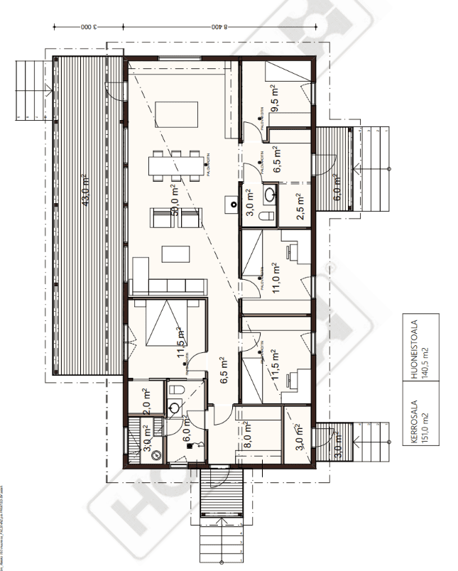 Esiteltävä omakotitalo on asiakkaiden toiveiden mukaan muokattu mallista Riekko 150.
