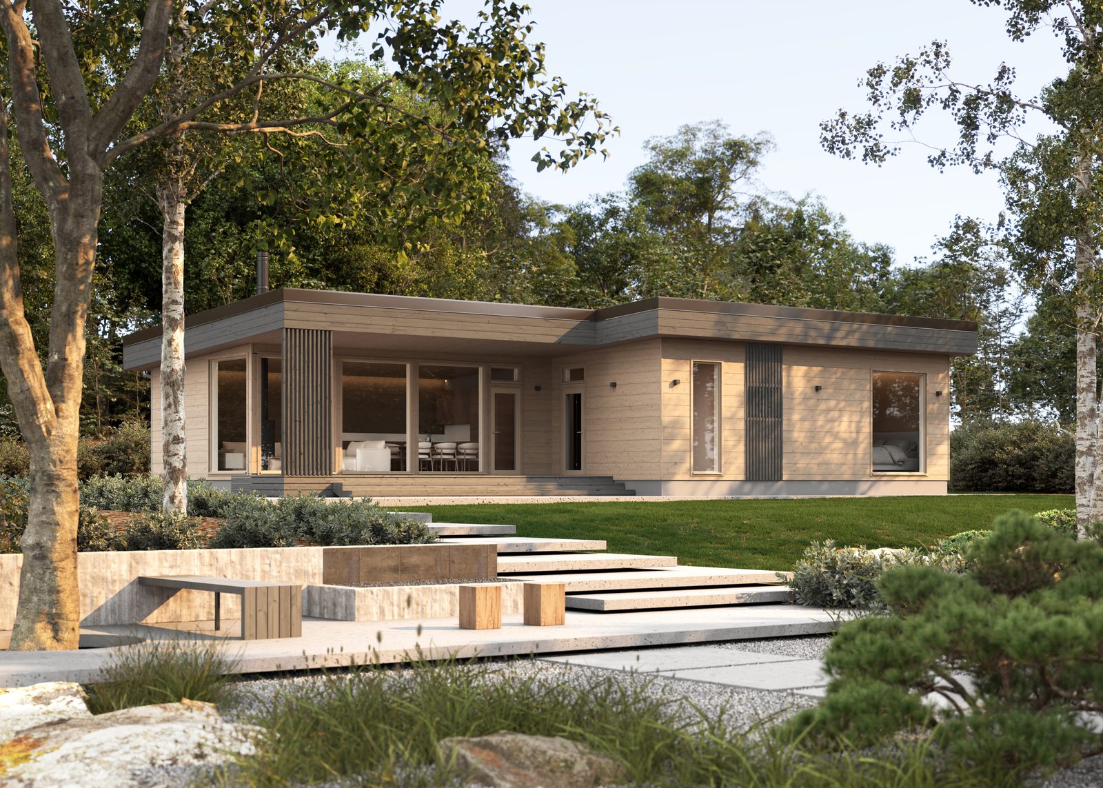 ”Asiakas saa tontistaan parhaimman irti, kun hän voi vaikuttaa siihen, mihin suuntiin talon näkymiä avataan tai suljetaan ja minne terassit sijoitetaan. Pergoloilla ja rimoituksilla suojataan tuulelta, luodaan varjoisia tiloja auringolta tai lisätään näkösuojaa tiheällä asutusalueella. Tilasuunnittelun lähtökohtana on ollut kompakti tehokkuus arjen luksusta unohtamatta. Oleskeluun on haluttu varata runsaasti neliöitä, makuuhuoneet puolestaan sijaitsevat omassa rauhassaan.”, kertoo Hongan liiketoiminnan kehittämisestä vastaava Olavi Kujanen.