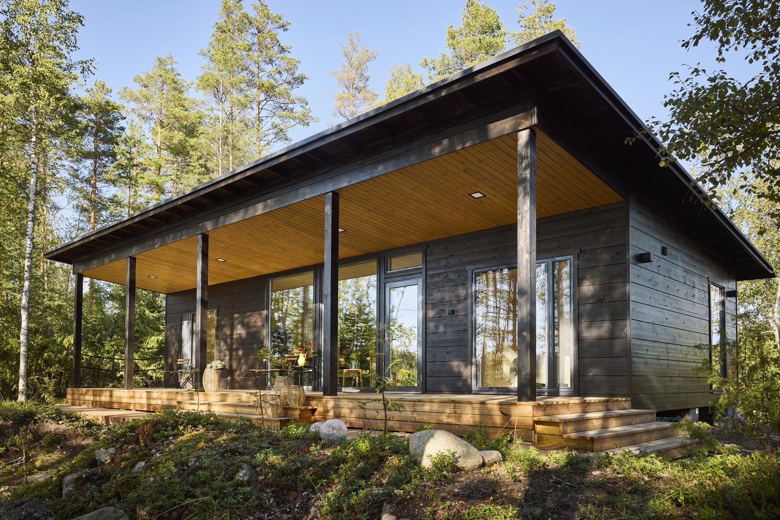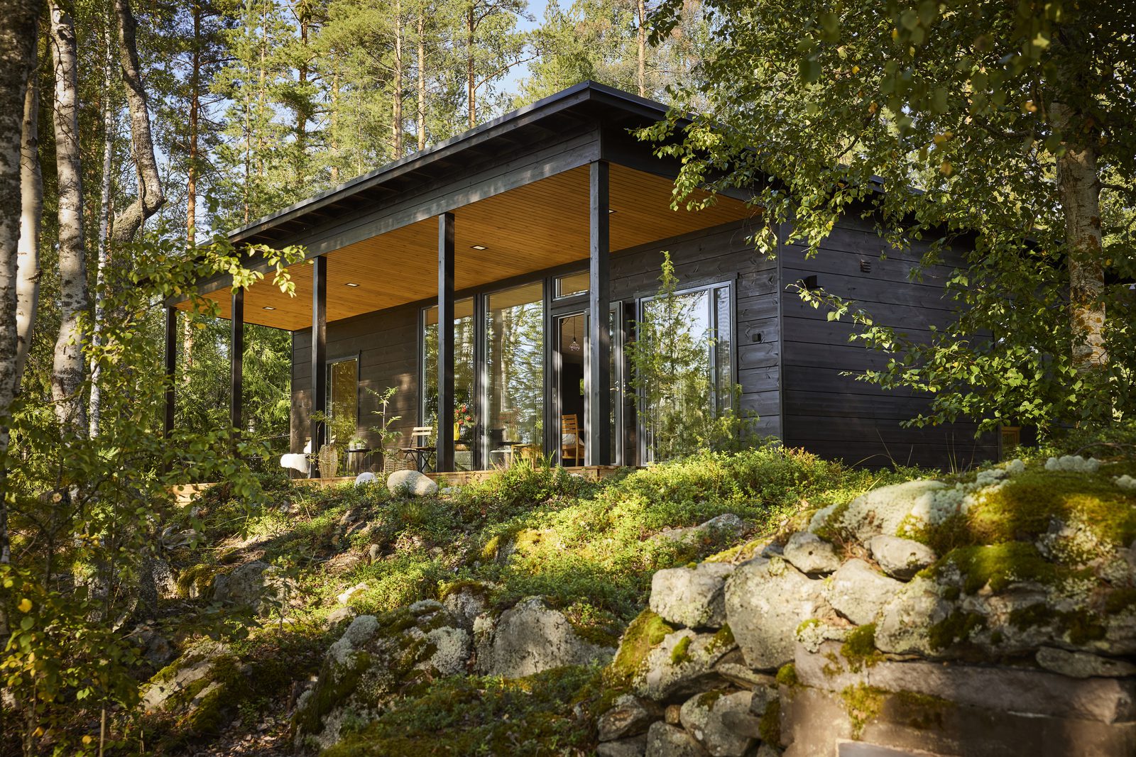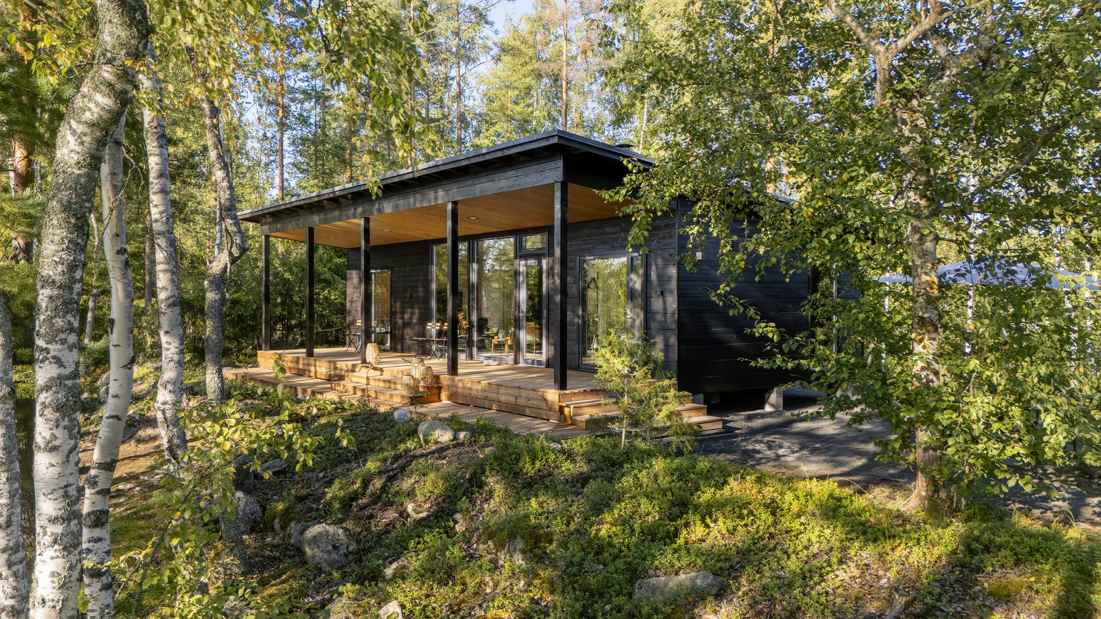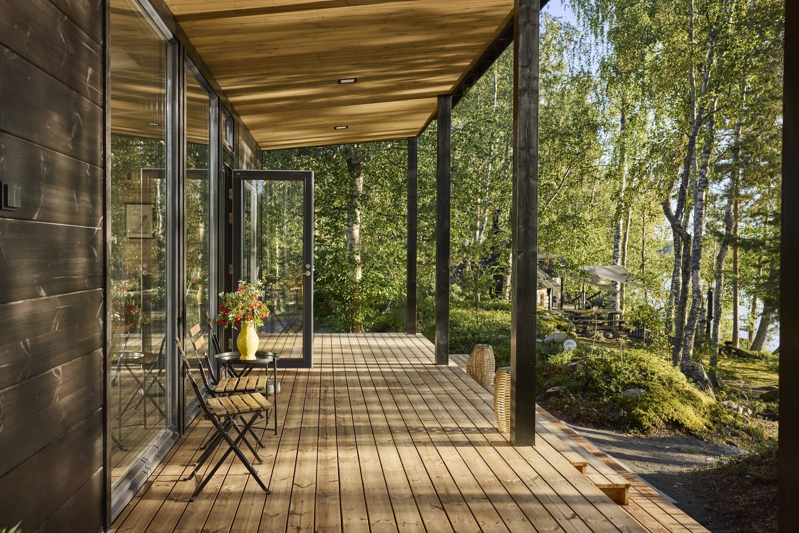 Vaikka venematka mantereelta Markon ja Meinin perheen saareen kestää vain muutaman minuutin, sen aikana syke laskee ja mieli rauhoittuu. Saaren laiturilta puiden välistä pilkottava moderni mökki näyttää uudelta ja uljaalta, mutta se istuu niin täydellisesti maisemaan vanhan polun päässä, ettei voi kuvitella sen vasta valmistuneen.